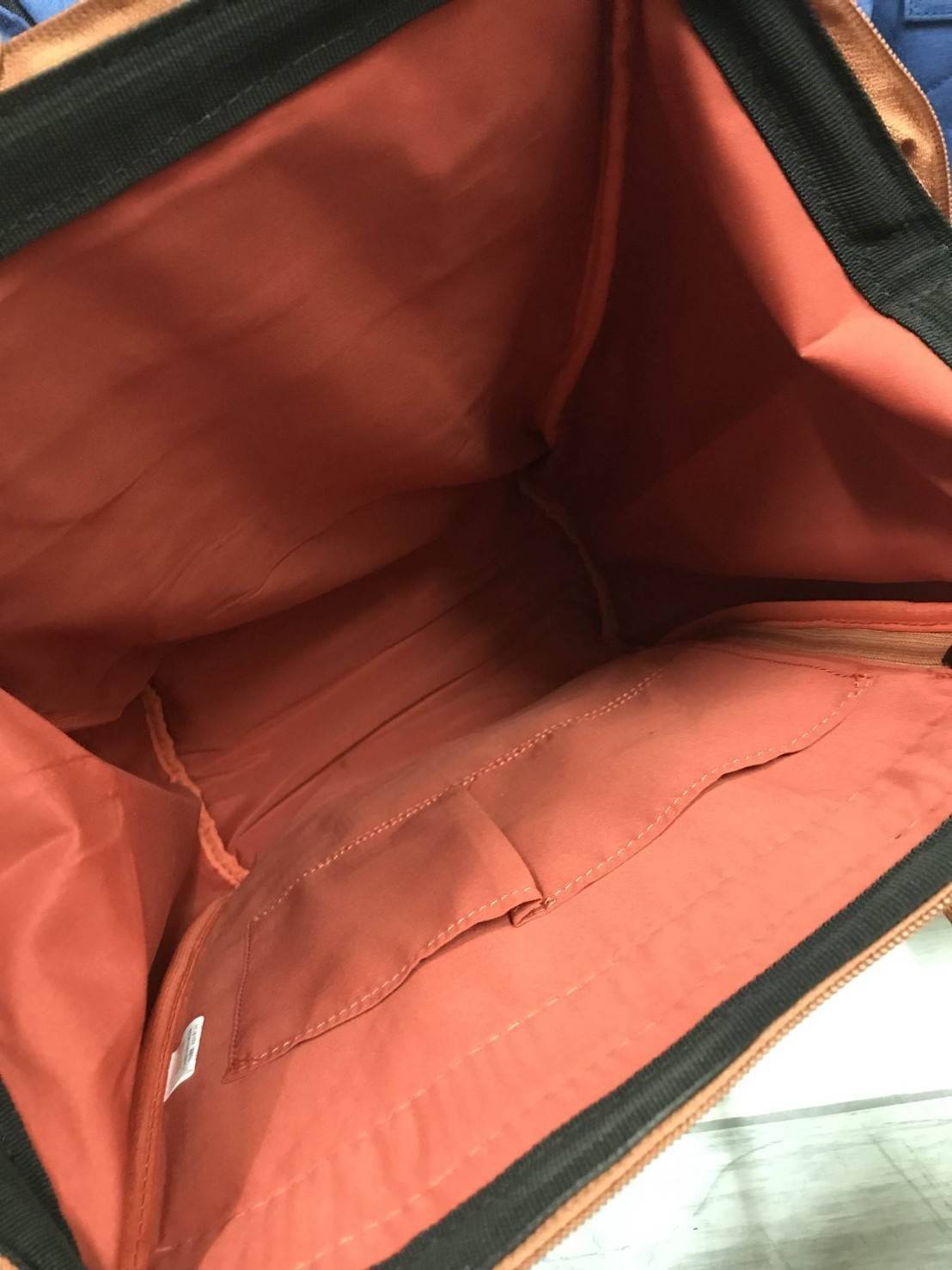 ด้านหน้าเป็นงานปักโลโก้ หัวซิปแบรนด์สีสันเข้ากับตัวกระเป๋า